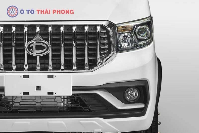 Phần đầu xe gây ấn tượng với mặt ca lăng dạng hình khối, thiết kế các thanh nan dọc bản lớn, mạ chrome sáng bóng. Chi tiết này không chỉ tạo điểm nhấn thẩm mỹ mà còn mang lại cảm giác sang trọng, cao cấp – điều hiếm thấy trên các mẫu xe tải 1.5 tấn phổ thông.