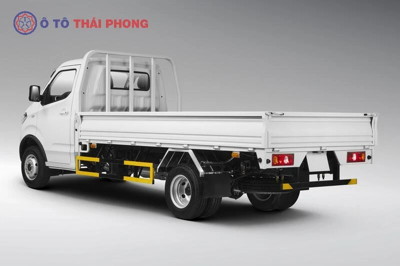 Phía sau, xe được trang bị nhíp lá 2 tầng kết hợp giảm chấn thủy lực, tăng khả năng chịu tải và giữ cân bằng tốt hơn khi chở hàng nặng.