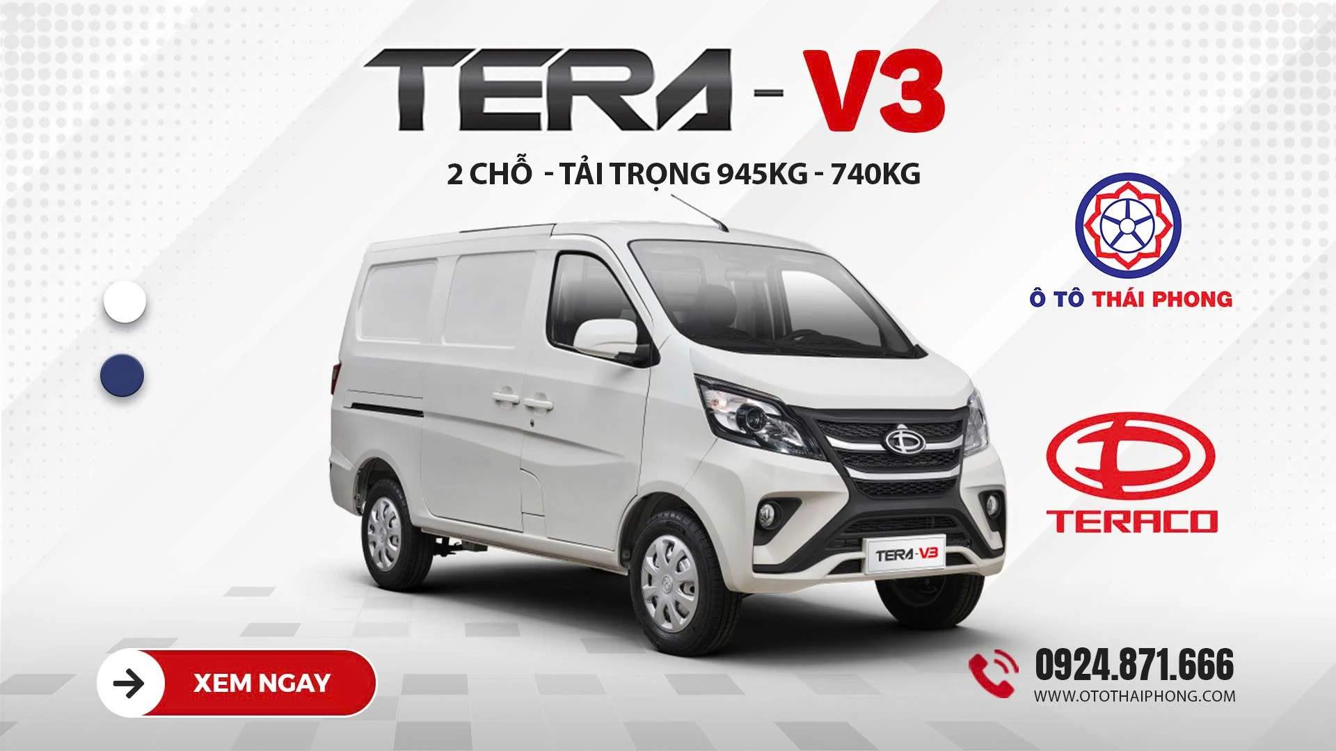 Giá bán của xe van TERA V3 2S 945kg trên thị trường có thể thay đổi theo từng thời điểm cũng như các chương trình ưu đãi của đại lý. Để nhận báo giá chính xác, thông tin khuyến mãi mới nhất và các chính sách hỗ trợ mua xe trả góp, khách hàng nên liên hệ trực tiếp với đại lý để được tư vấn chi tiết.
